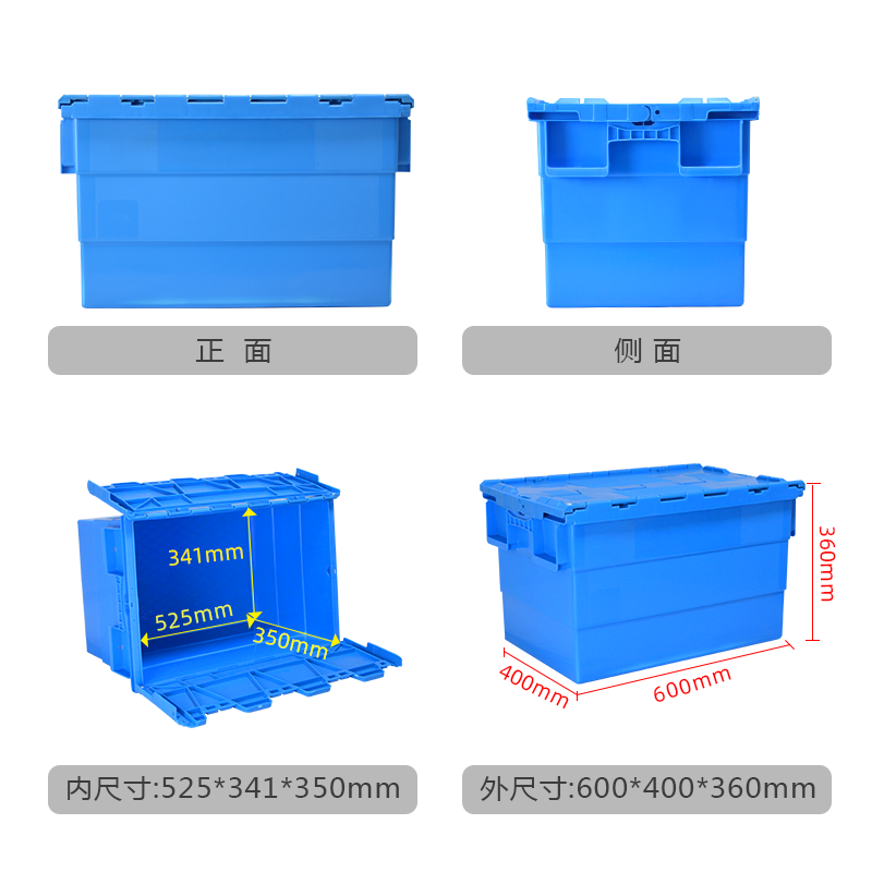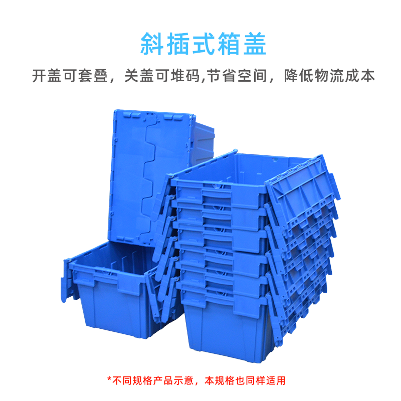 特點:全新料生產,有韌性,壽命長,開蓋可套疊,關蓋可堆碼,節省空間,降低物流成本